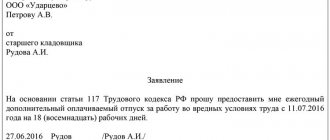 Leave is issued by order (form T-6) based on the employee’s application, which contains a resolution from the head of the enterprise to provide such leave. Without this document (which the vacationer must familiarize himself with), absence from work is classified as absenteeism.