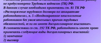 - статья, по которой увольняется сотрудник, и совершенный им проступок.